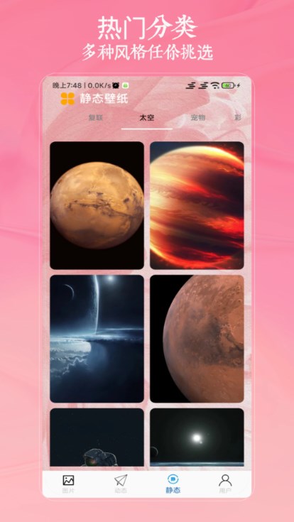 3、静态壁纸高清壁纸选择丰富,每日更新最全资源。