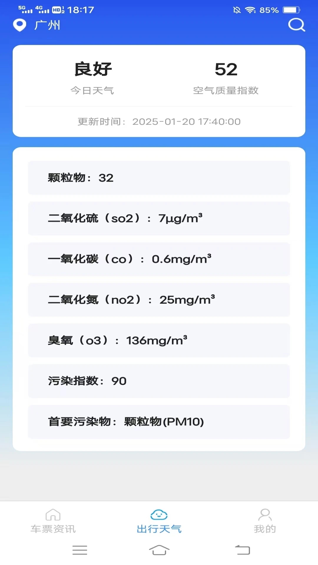 4、可以随时在这款软件上进行天气预报、空气质量查看;