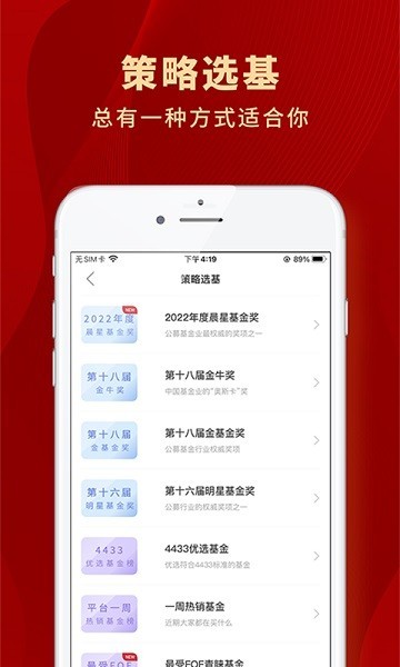 众禄严选、策略选基、投顾组合等多种特色功能/服务,满足不同人群的投资需求,让您轻松告别选基困难症。
