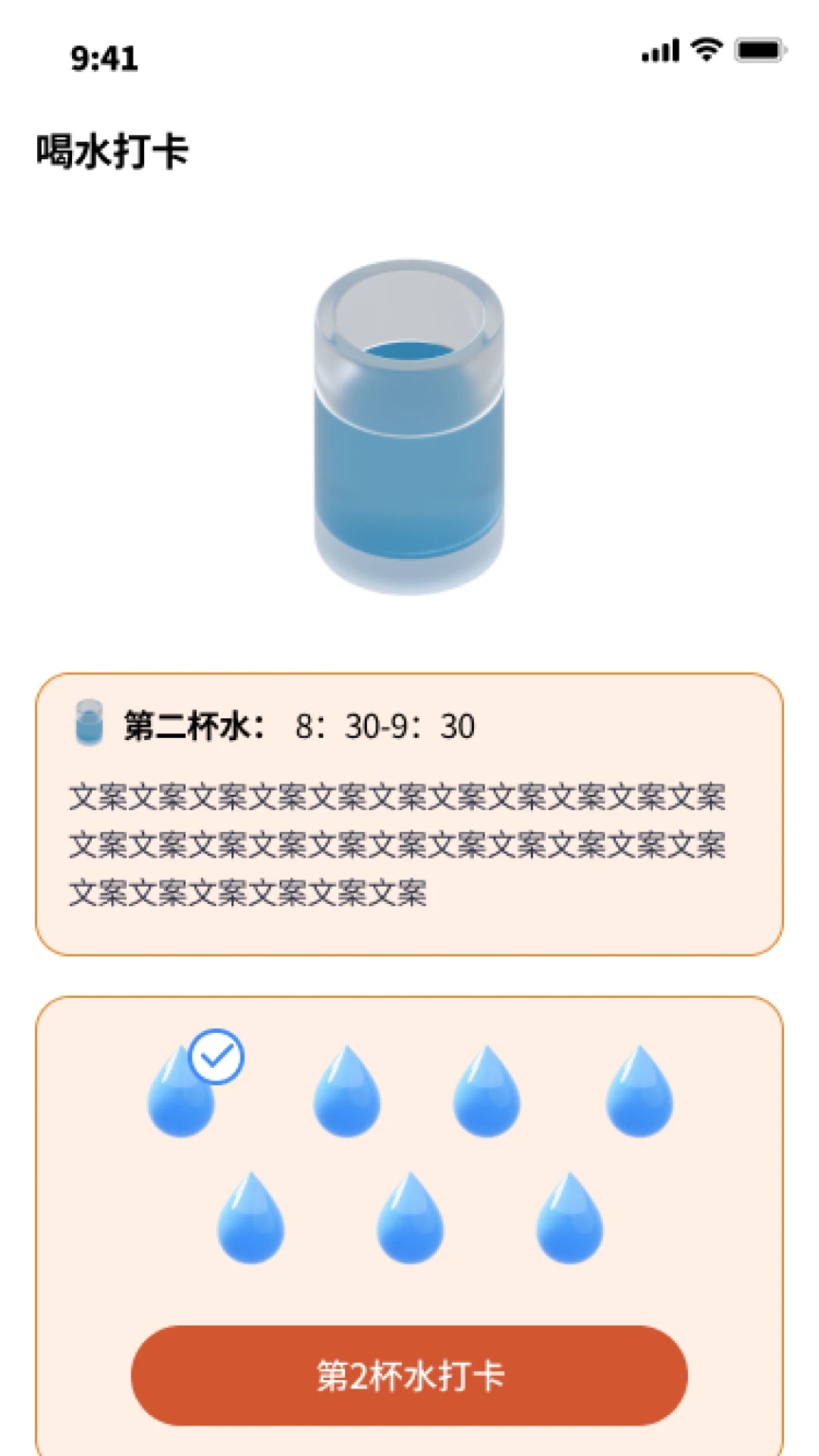 3、每次喝水,使用简单的操作即可完成喝水打卡。