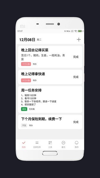 待办,列举出您将要处理的事情,避免忘记和遗漏。