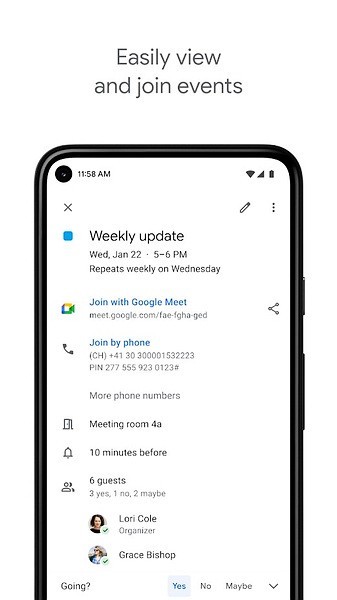 谷歌日历不仅提供了一键创建任务和清单的便利,还能自动提醒用户重要事项,保障日程的高效管理。该应用界面清晰简洁,使用起来非常流畅,让用户能够随时随地管理和查看活动。谷歌日历还支持订阅其他日历,让用户在生活中更加井井有条。谷歌日历是一款功能丰富、高效实用的日历应用,为用户提供了全方位的时间管理和活动安排服务。