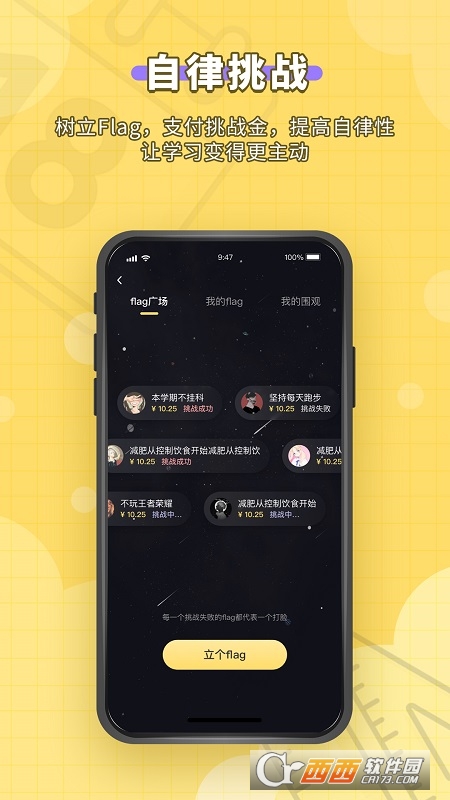 树立Flag,支付挑战金,提高自律性