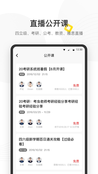 无限回放:直播课程结束后,你还可以在考前无限次听回放,APP全屏播放回放,全视角新体验。