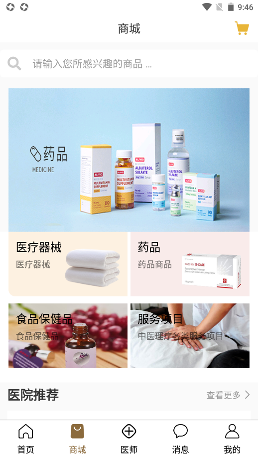 3、有能够开展网上购物的基本功能应用,包含但不限于药物.医疗机械.食品类保健产品.及其其它的服务,客户可以在软件主页的搜索栏中实现检索;