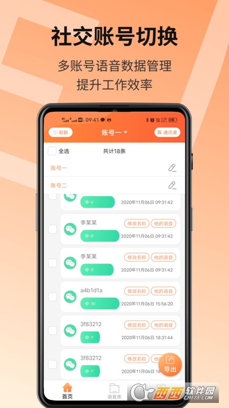 筛选,用户的语音记录会有很多,微信语音导出APP软件为用户筛选语音记录的功能,用户通过语音合并软件时间进行筛选。