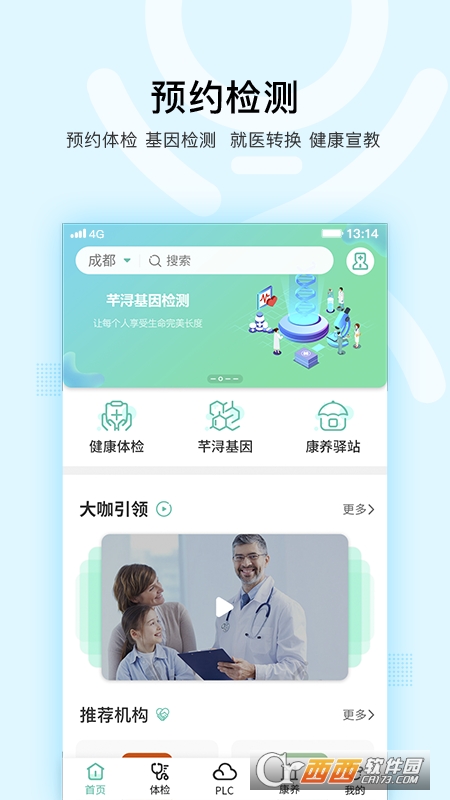 预约体检、线上预约线下体检免去排队挂号时间,预约基因检测,医护上面采用防癌筛查。