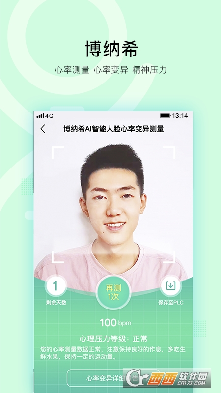 全球领先的光电技术、国内首创的便捷应用,智能Ai检测心率、心率变异、精神压力测量,无需使用仪器设备,通过手机前端摄像头自我检测。