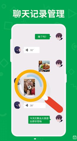 1,自由管理,文件保存,聊天记录管理大师app中建立了非常庞大的数据管理模式来进行发布和整理,让用户可以更加轻松的管理自己的聊天记录,同步收录随时进行查看。