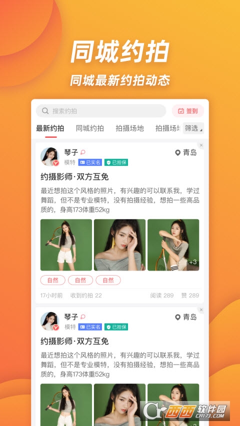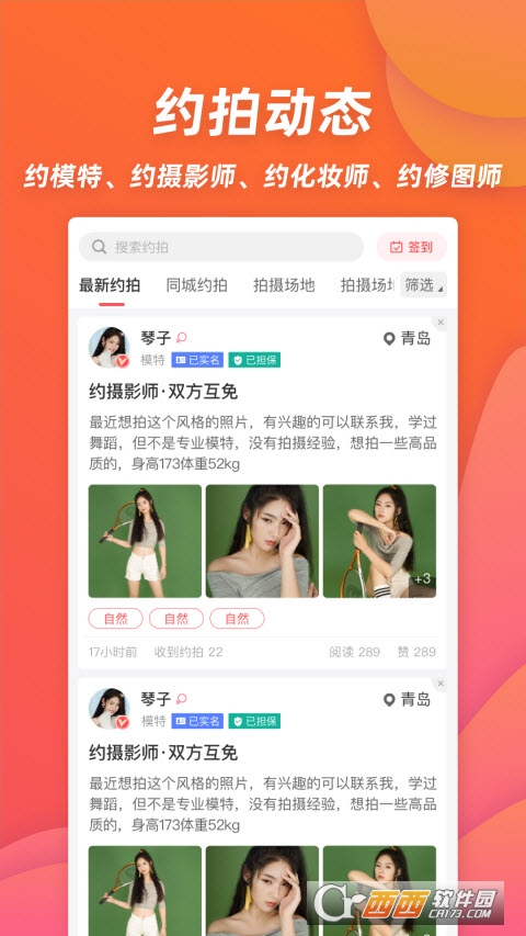 模特、摄影师实名认证,约拍更靠谱,专属图标助力区分。
