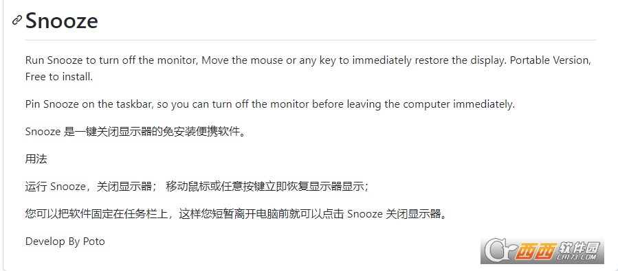 Snooze 是一键关闭显示器的免安装便携软件。
