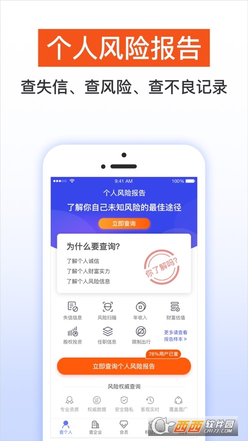 2021-10-21版本: 5.5.2查个人风险、失信信息、不良记录、查老赖、风险检测等;