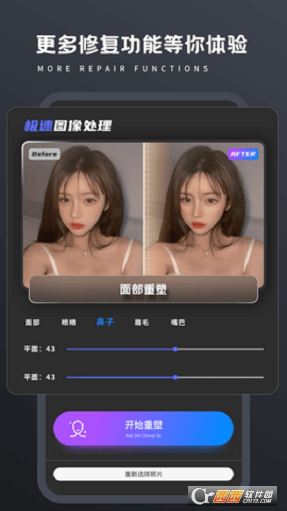 进行精细化的去皱提拉重构面部等等,让照片一键回到年轻的时候。