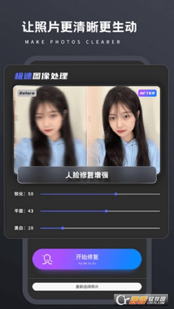 轻松一键帮助用户修复画质,确保了图像的每一个细节都能做到完美无缺