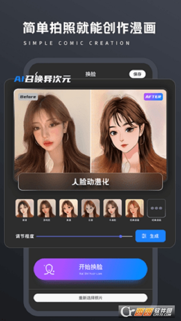 人脸动漫化,您只需要上传普通照片,轻松一键创作,即可生成动漫照片,召唤异次元