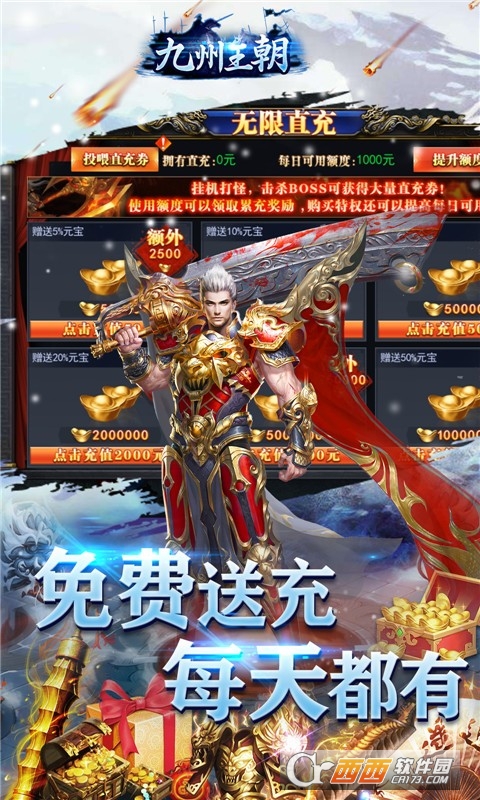 2.内置免费充值系统每天可白赚充值!不充值也玩的爽