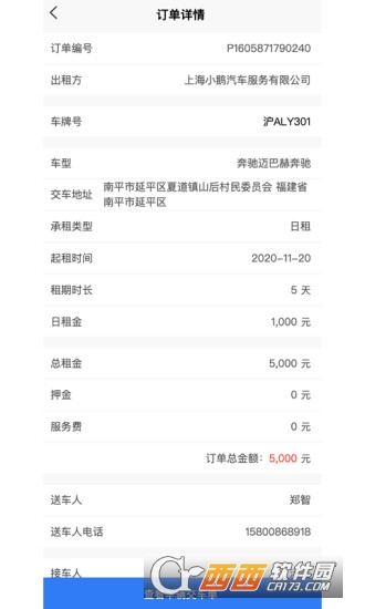 3)每一笔的订单记录都非常的详细,包括订单编号,车牌号车型,承租类型,总租金等等。