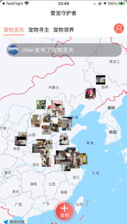 3,各种数据,互相帮助,用户可以通过软件发布宠物走失以及寻主还有宠物领养的动态,各种动态互相之间进行查看,让用户互相帮助,构建全新的社交关系。