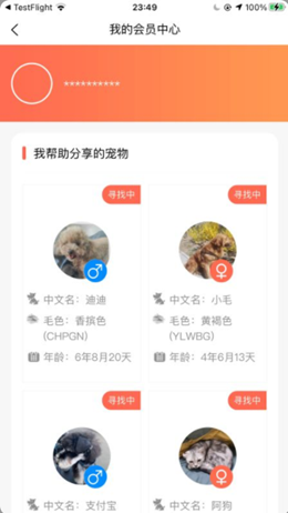 2,对于用户来说,可以直接通过该软件建设的独特会员管理模式来发布各种类型的宠物走失的数据信息,及时进行同步上传,推送到其他的用户手上,认领和寻找自己的宠物。