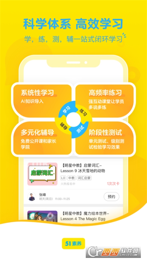 51Talk青少儿英语(51素养)是一款非常不错的手机英语学习应用软件,51Talk青少儿英语(51素养)是专为青少儿打造的英语在线学习软件,专业的外教老师,为用户提供最标准的英语教学。欢迎用户使用鳄斗163手游网!