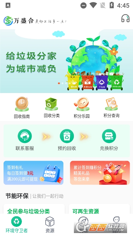 万盛合(绿色环保)是一款学习环保知识的平台,在这里汇集了多方面环保内容,还有垃圾分类服务,可以随时搜索垃圾所属类别,高效率进行分类放置,还有回收指南、回收分类、积分乐园和积分查询服务,更有答题活动,让生活更加绿色,鳄斗163手游网使用吧!
