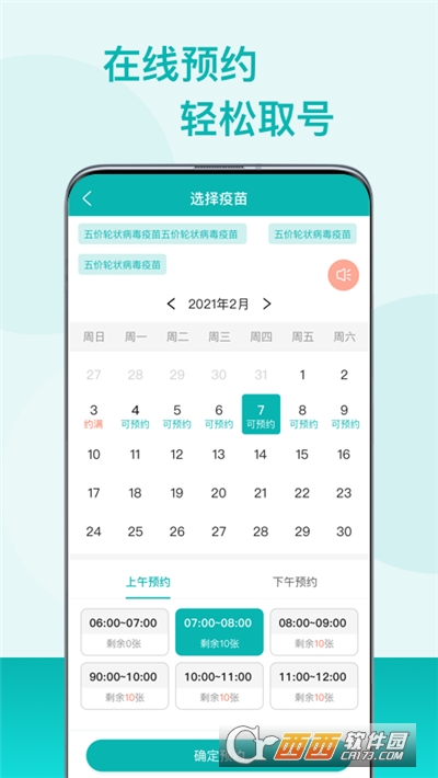 点击“儿童预约”,家长可以根据推荐接种日期自主分时段进行接种预约。选择接种日期和时间段(后面显示的剩余数量是单位的预约上线人数,即还可以预约几个人,如果提示“已满”则不能预约),选择时间段后点“确定”进行预约。如果不知道门诊的具体位置,可直接点击右边导航按钮,也可直接点击右边电话按钮拨打门诊电话咨询相关问题。