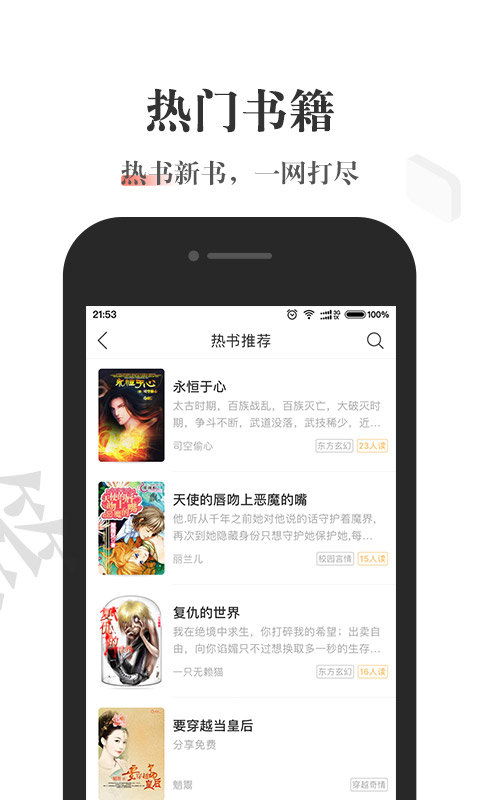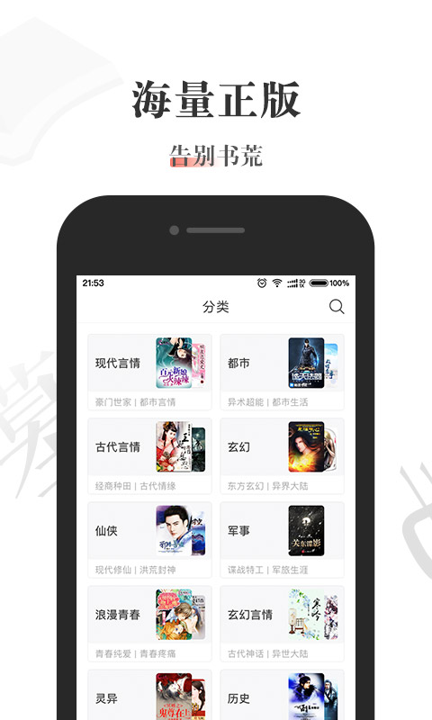 多维度分类:书籍按照类型、人气、新旧等多维度进行分类,帮助用户高效地找到自己感兴趣的内容。