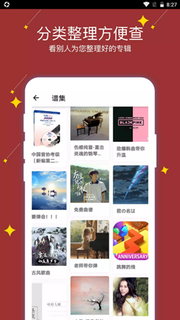 3,同时通过软件社区模式的构架和整理,其他用户也可以将各种优质的曲谱进行分类讨论和发布,建立各种专辑数据,让更多的用户来进行挑选和使用,学习音乐更简单。