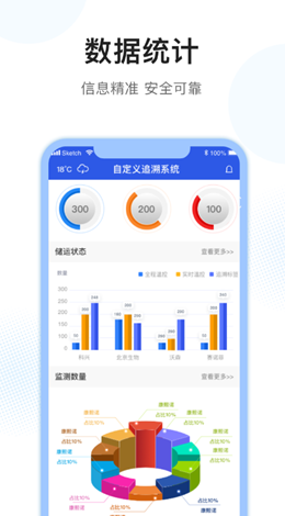 2,统计报表,清晰可见,用户可以在软件上随时来统计所有的数据内容,依照各种不同类型的数据变化都可以进行各种类型的表格统计,树状图以及柱形图都可以表达。