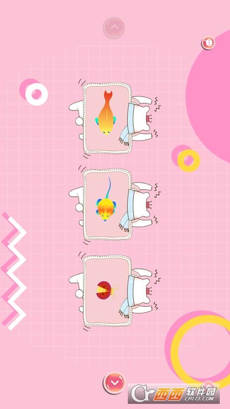 2. 左右滑动,挑选一款逗猫游戏:小猫抓鱼、猫捉老鼠、拍虫子、狗尾巴草、毛绒球、红外线模拟器等;