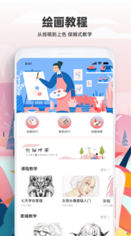 1,熊猫绘画app依据强大的程序模式来进行设计和管理,建立了非常全面的管理机制,让所有用户都可以更加方便的挑选各种类型的绘画教程,资源丰富,讲解非常仔细。