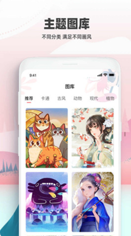 3,主题题库,自由查询,用户可以通过软件构建的独特题库资源模式来进行使用和开发,可以更好的管理自己的资源,随时都可以进行临摹努力练习,变得更加优秀。
