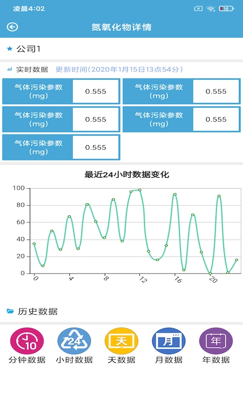 1、用户可以通过应用随时对每个监测点进行监控和管理,查看监测点附近的温度、湿度、PM1、PM2.5、PM10等相关环境数据,支持一年内的数据对比,实现多元化的环境分析。