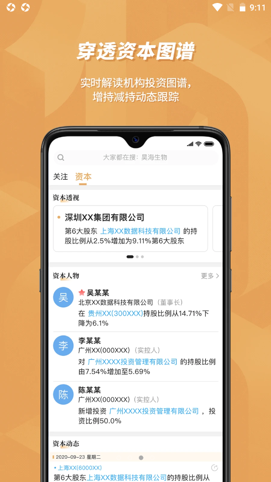 2、软件可实现上市公司、资本公司、金融机构、人物的动态跟踪与推送提醒,助力投资决策,让你的决策可以有更加强大的数据支持;