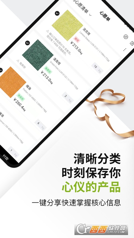 实现掌上浏览UPW庞大的纱线数据,200+品种,3000+颜色轻松get!更有个性化心愿单、购物车选品一键分享功能,为您与客户建立快速沟通的桥梁。还有业内最新的可持续发展资讯、环保纤维的特性和独到应用,为您带来省时、省心、灵活、便捷的体验,更是为快时尚发展提供了源源不断的创意。
