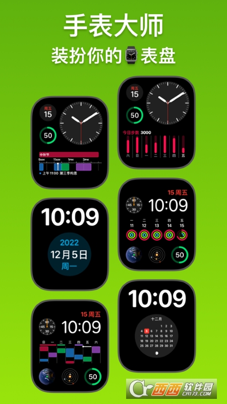 手表大师是专为Apple Watch用户所打造的一款表盘工具,方便用户在手机上面打造专属于自己的表盘内容,高度自定义的内容让用户完全的能够打造一个专属于自己的表盘,从而让你的表盘有着更为多的多样性,如果你需要你的表盘更加的多样的话就快来下载手表大师!
