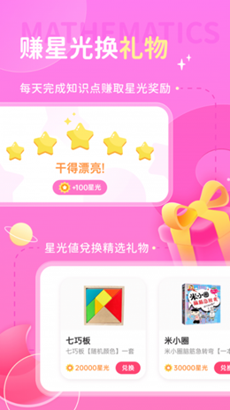 2,奖励模式,星光奖品,用户在软件上进行各种不同模式的学习内容来进行测试和练习之后就可以进行专项的答题奖励获取,可以更好的获取更多的奖励。