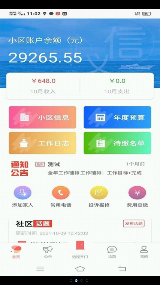 3、高质量物业费用管理,用户们可以在首页上查看到小区当前的物业费用余额,更可以便捷未来的物业费用资料,让每一笔账单都有迹可循;