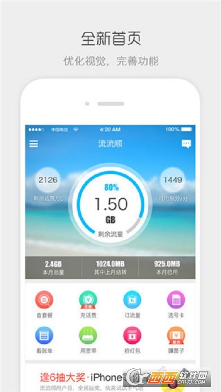 四川电信app这个软件主要可以统计流量,这个不是重点,现在很多软件都是可以查询统计的啦。重点是它可以订!购!流!量!包!简直炫酷到没朋友啊!