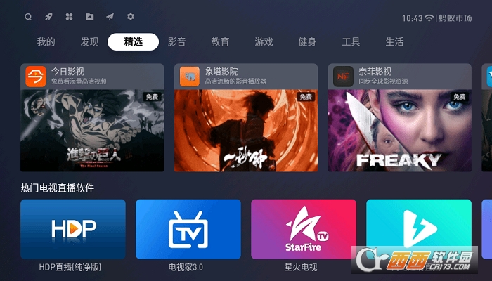 蚂蚁市场tv版提供各种电影、教育、游戏、健身等各类软件下载,资源丰富,所有版本均通过测试。