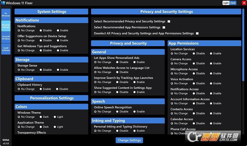 Windows 11 Fixer 是一个旨在让自定义 Windows 11 尽可能简单的程序。Windows 11 Fixer 提供了一个易于使用的位置来自定义 Windows 11、更改大量 Windows 设置(包括安全设置)、卸载不需要的 Windows 软件以及安装您想要或需要的大多数程序。