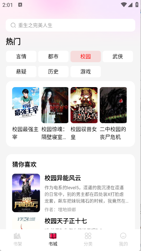 2、进入到书城页面推荐了很多热门的小说资源。