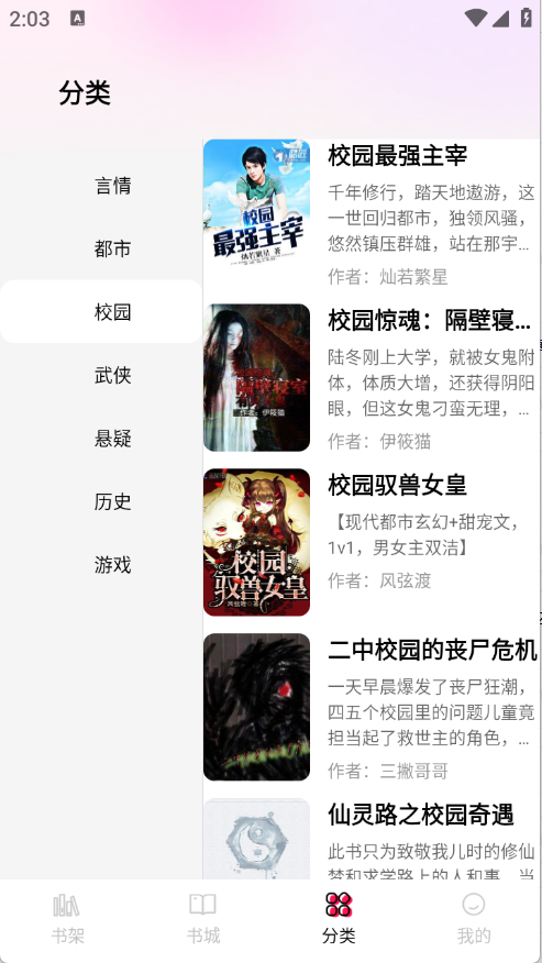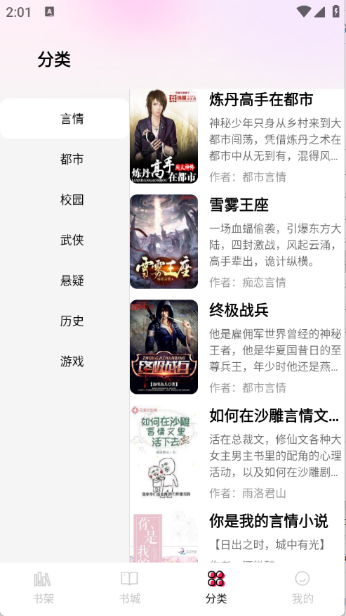 3、分类页面将小说进行了详细的归类。