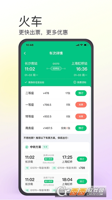 1,火车票:支持在线抢票、在线选座;快速出票,支持邮寄;更多各性化服务,红包优惠!