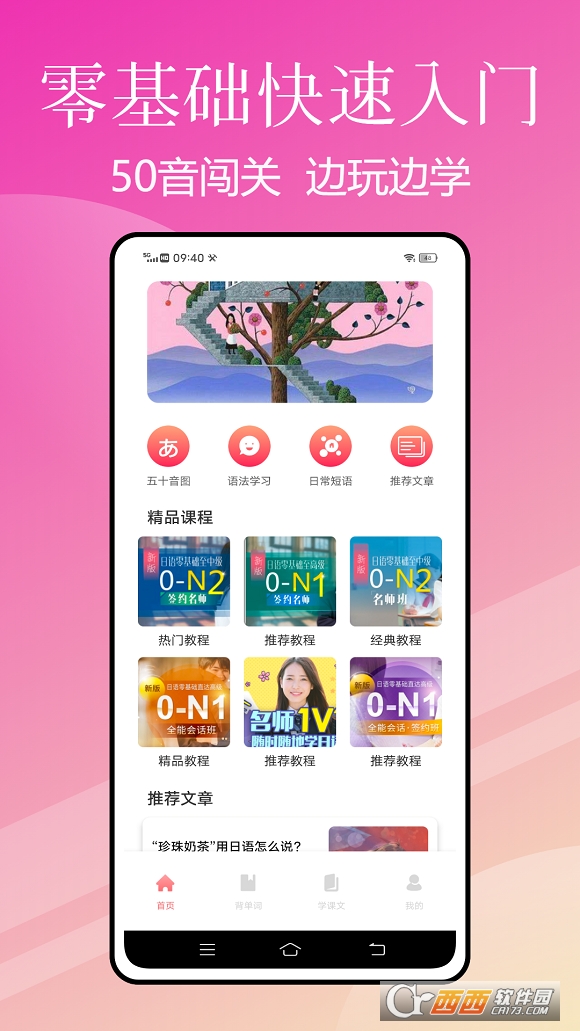 3、这里有各种日语课程内容,进入课程就可以直接开始学习,非常的有效率。
