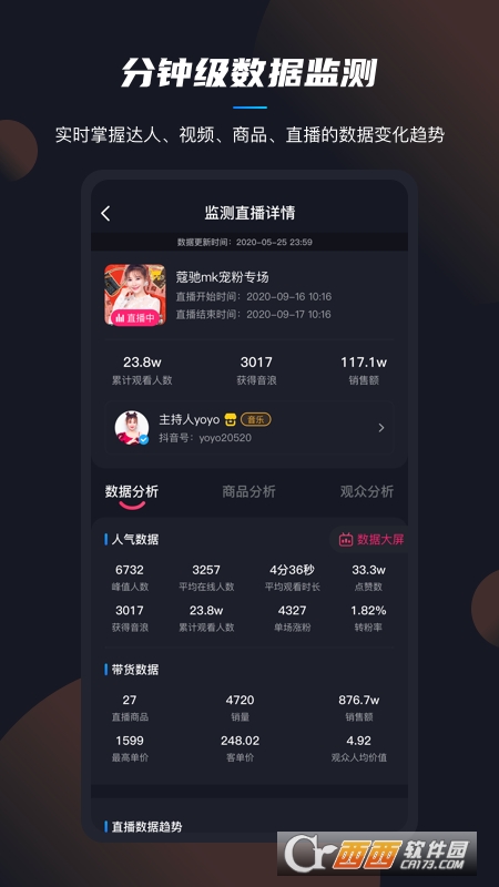 可以看最近的飙升视频,看最热的电商产品,是一个涨分达人也可以锁定,让你能实时监测数据的综合中心!