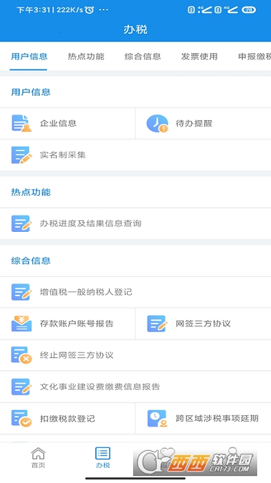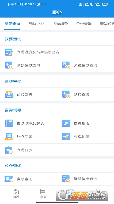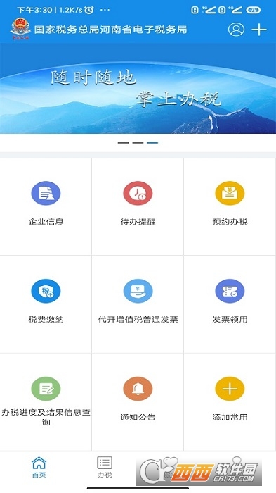 “河南税务”App是由国家税务总局河南省税务局主办,是为纳税人、缴费人和社会公众提供的一个实现涉税事项在线办理而推出的一款移动办税工具,主要支持综合信息报告、发票使用、纳税申报及税费缴纳、证明开具、我要查询、互动中心、咨询辅导、公众查询和通知公告等功能。