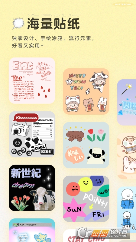 和国内众多正版字库及独立字体设计师合作,近百款正版中英文字体。上百款潮流贴纸和壁纸,感受在别的地方可没有的小美好。让你的照片锦上添花。