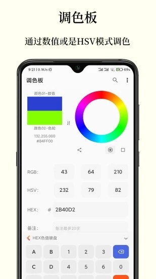 色彩爱好者手中的手机工具,辅助收集各种不同的色彩,建立专属于你自己的颜色库 !