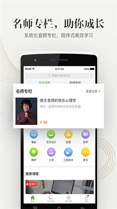 来自985高校的优质课程,从基础科学到文学艺术、哲学历史到工程技术、经管法学到农林医药,内容应有尽有,完全免费。